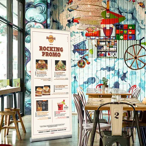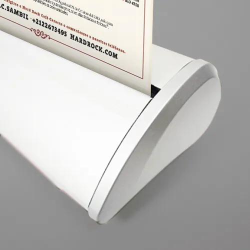 ¡Atrae más clientes a tu negocio con estos roll ups deluxe. Hechos con un soporte fuerte y estable, estos soportes rollups harán que tu marca destaque de manera notable en cualquier sitio que lo coloques, tienen un acabado excepcional que prolonga la durabilidad de la lona y el material premium con el que se imprime la imagen hará que se vea increíblemente bien ya que esta hecha de una película de poliéster blanco mate de 210 mu (microunidades) con un recubrimiento satinado en la parte delantera y con la parte trasera plateada. Se trata de un material completamente opaco y no translúcido.