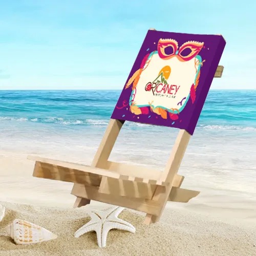 ¡Sácale todo el partido al verano con la impresión y personalización de las sillas de playa! Impresas a todo color, estas sillas de playa están hechas con madera, por lo que son más resistentes que las convencionales sillas plegables de plástico o aluminio. Un producto ideal para promocionar tu marca o negocio en espacios exteriores en verano.